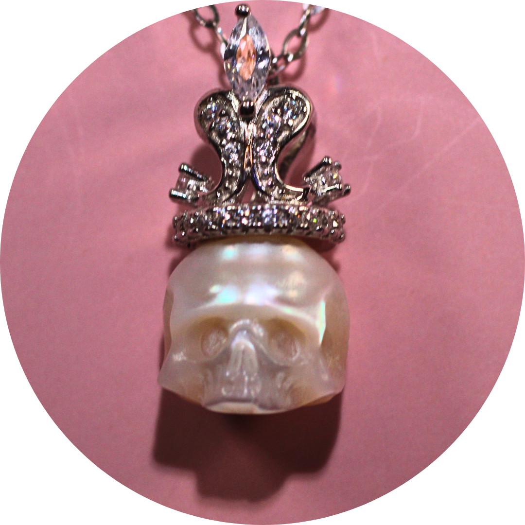 Mystic Skull Pearl in Witches Hat Necklace with  Fresh Water Handcrafted Pearl