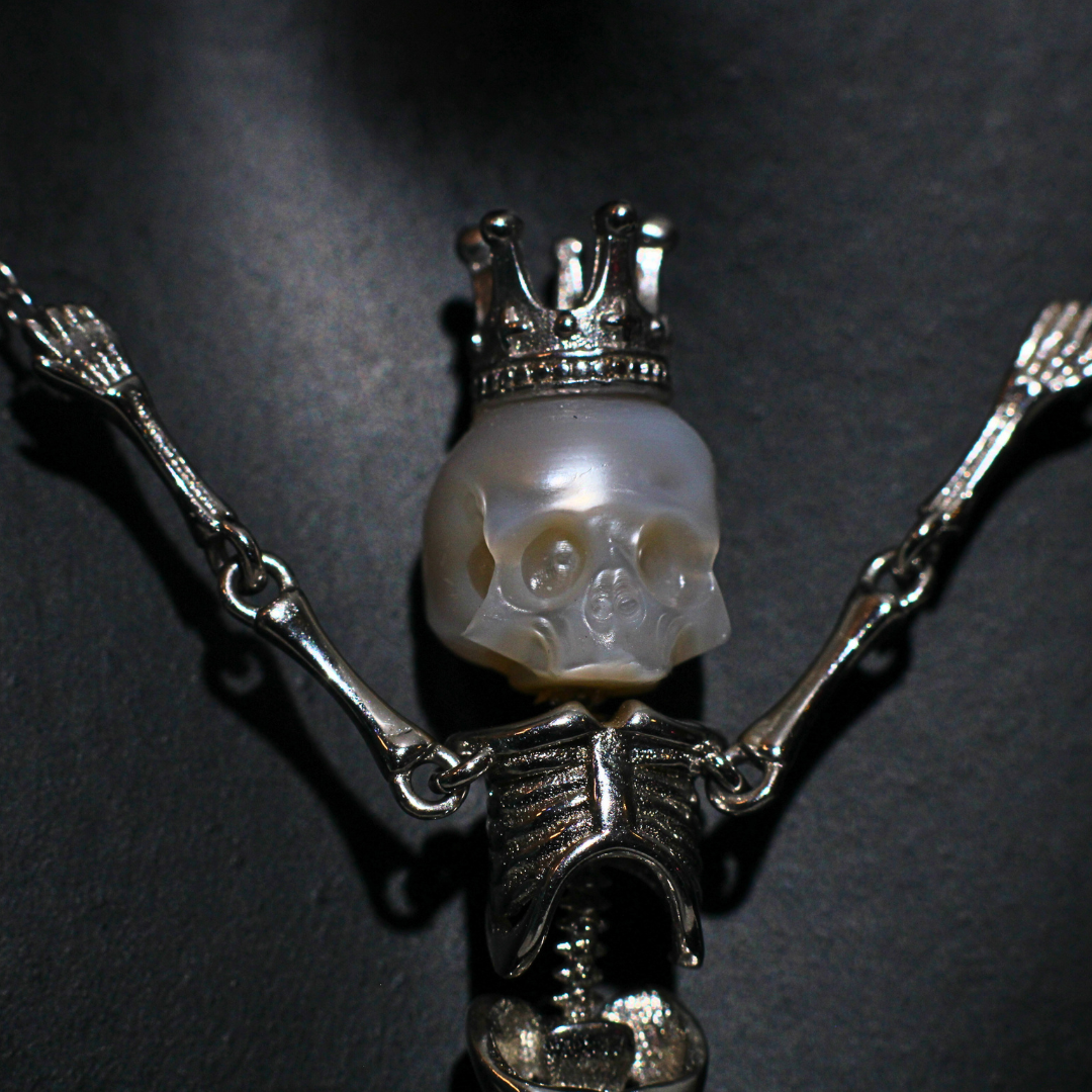 Mystic Skull Pearl in Witches Hat Necklace with Fresh Water Handcrafted Pearl