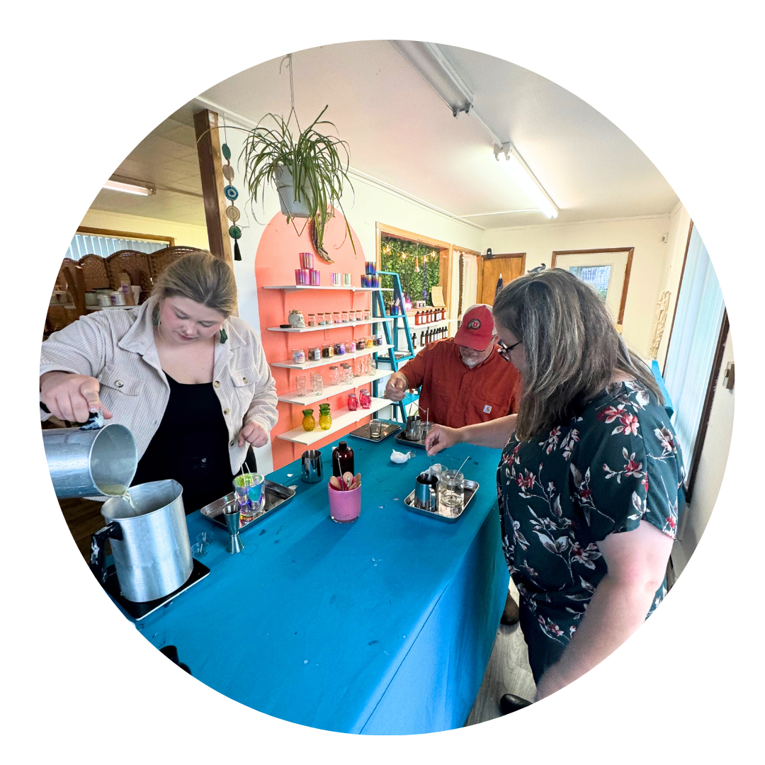 We started this biz on a converted bus back in 2018 and haven’t stopped pouring since. Our candle classes grew out of a simple idea: good vibes, good scents, and no toxic BS.