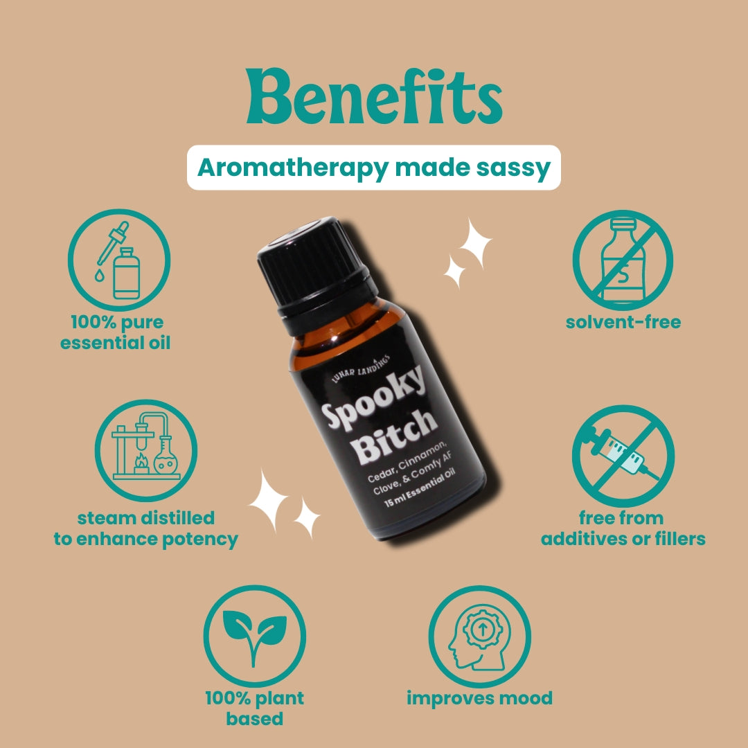 Smells like you're an extra Spooky Bitch! Our aromatherapy collection is here to boost your mood.