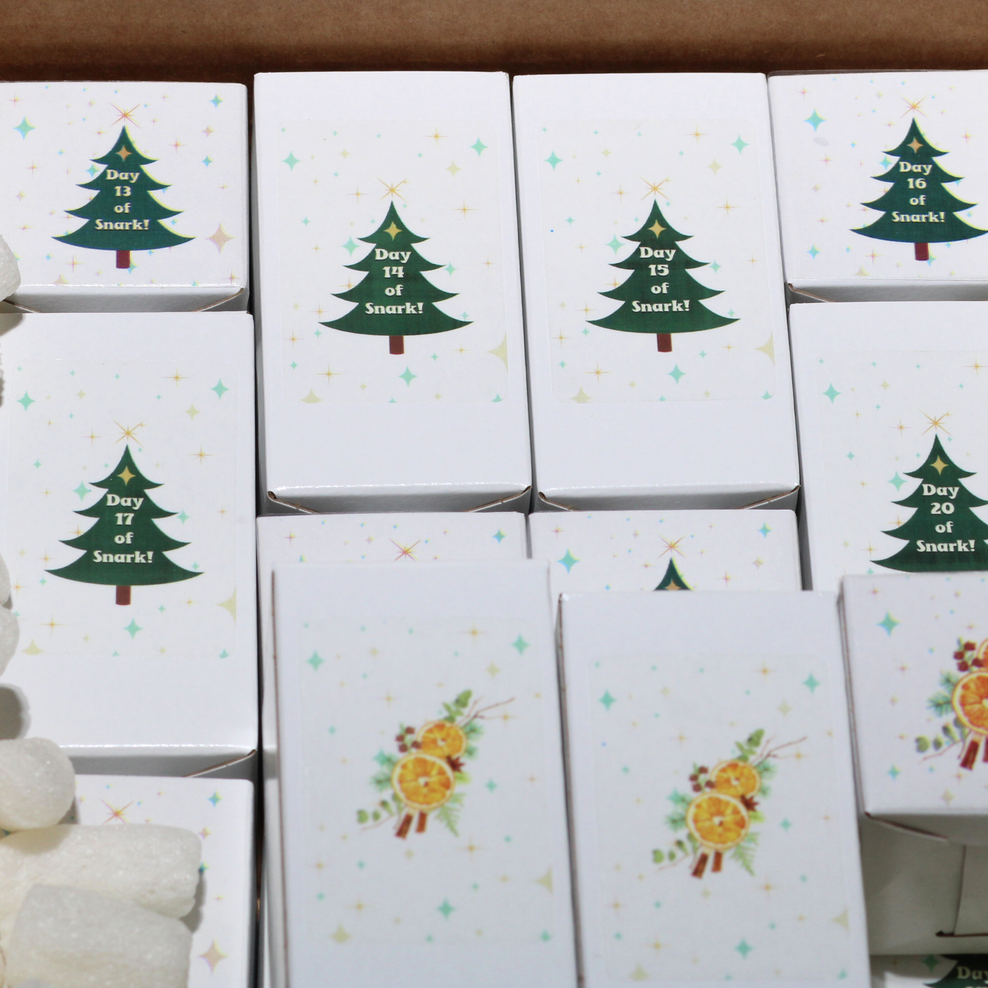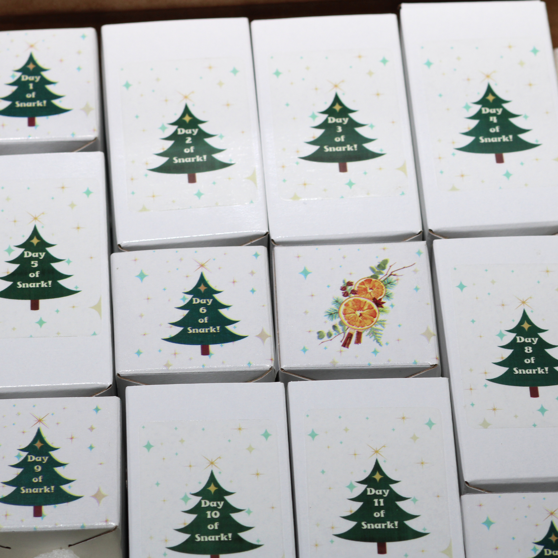 • 24 mini candles, room sprays & car freshies (a mix of fan favorites + exclusive Snarkmas scents)