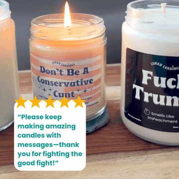 It’s hard out here for rebels who give a damn. Our candles are daily acts of protest and self-care—non-toxic flames that remind you: small actions still matter, even if it’s just lighting a candle while mentally burning it all down.